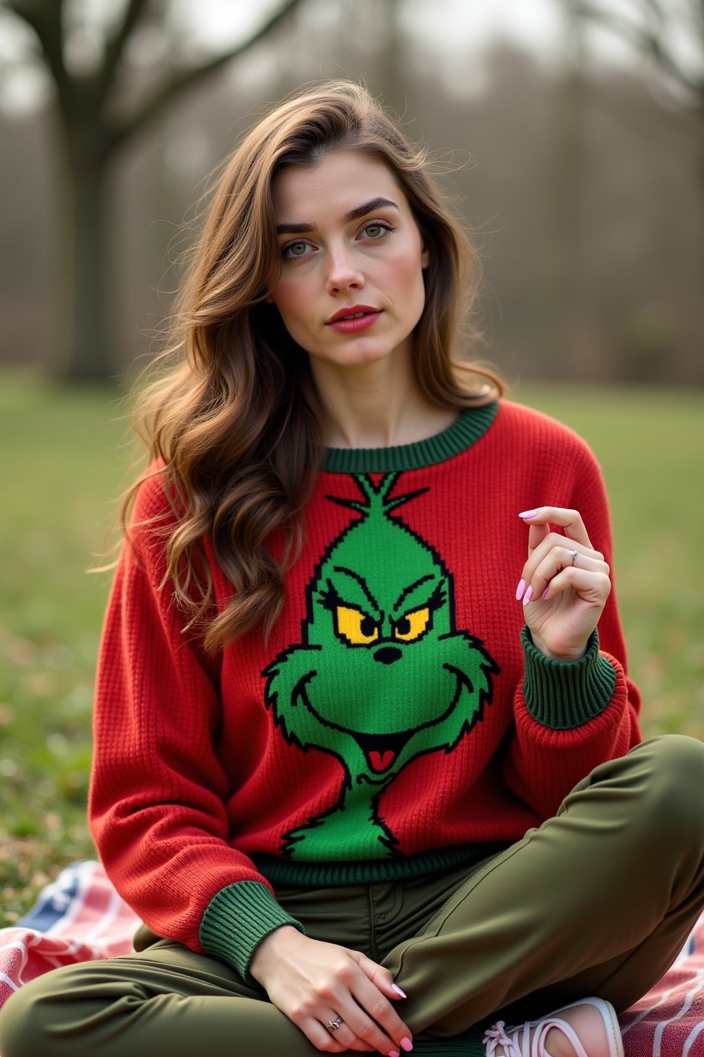 Wie man einen Grinch Pullover für Damen stilvoll in den Winterlook integriert