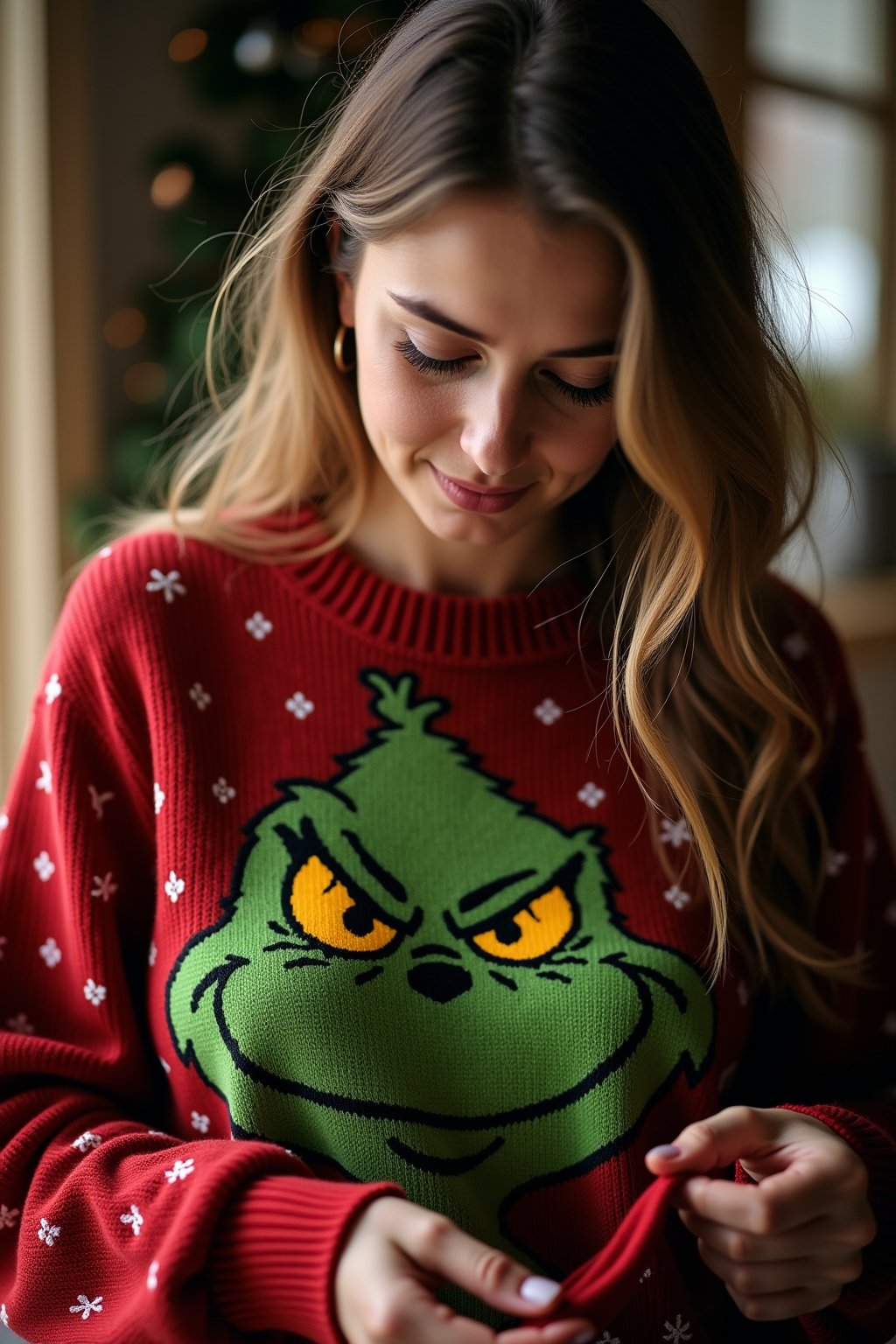 Wie man einen Grinch Pullover für Damen stilvoll in den Winterlook integriert