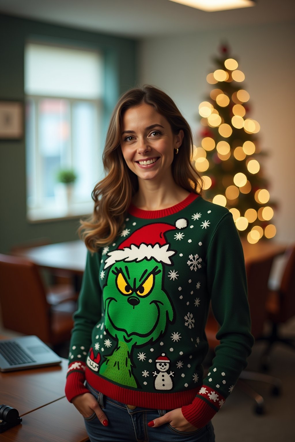 Kann ich Grinch-Pullover auch für Weihnachtsfeiern im Büro tragen?