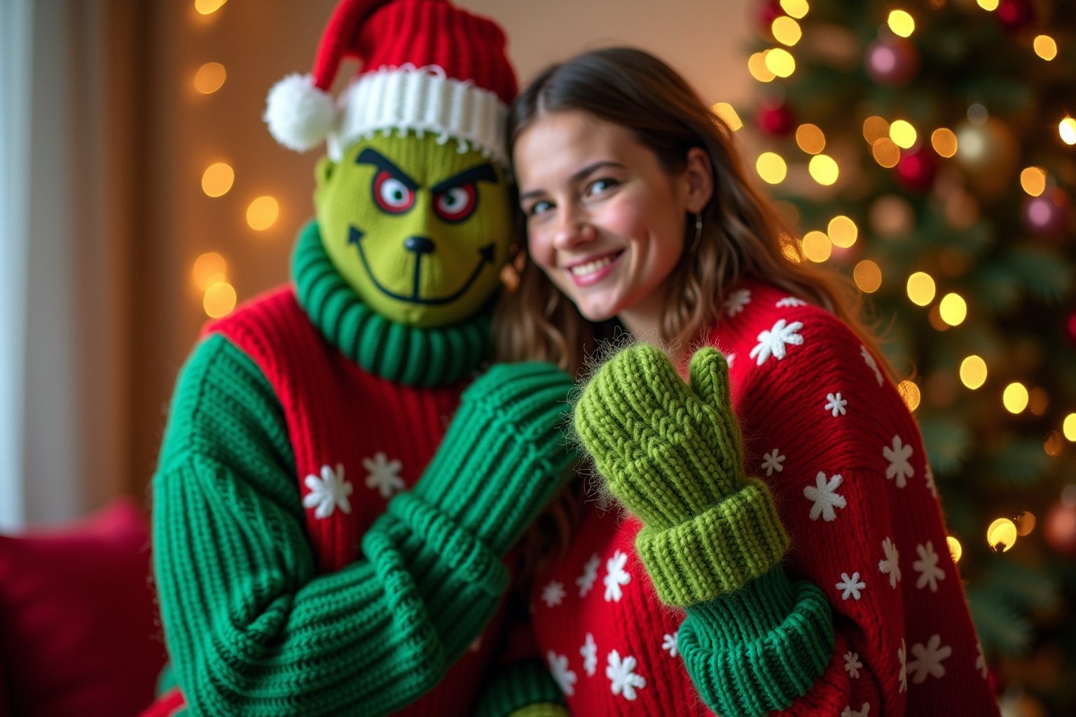 Ein Grinch-Pullover für Erwachsene muss nicht nur zu Weihnachtspartys getragen werden, sondern lässt sich auch hervorragend in deinen Alltags-Look integrieren. Kombiniere deinen Pullover mit einer schlichten schwarzen oder dunkelgrünen Jeans und minimalistischem Schmuck für einen lässigen, aber festlichen Stil, der nicht zu überladen wirkt. Für einen eleganteren Auftritt kannst du als Dame den Grinch-Pullover mit einem schwarzen Bleistiftrock und Ankle Boots stylen – so bringst du weihnachtlichen Charme ins Büro. An kälteren Tagen rundet eine neutrale Strickjacke oder ein schwarzer Mantel das Outfit perfekt ab und lässt den frechen Grinch auf deinem Pullover zum stilvollen Blickfang werden.