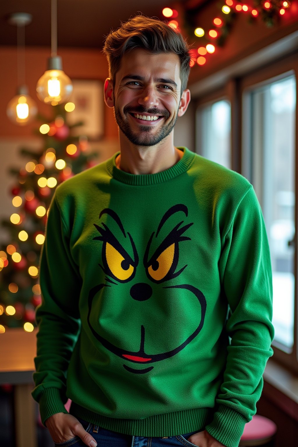 Festtagsmode mit Charakter: Grinch-Pullover vereinen weihnachtliche Stimmung mit humorvollem Stilbewusstsein.