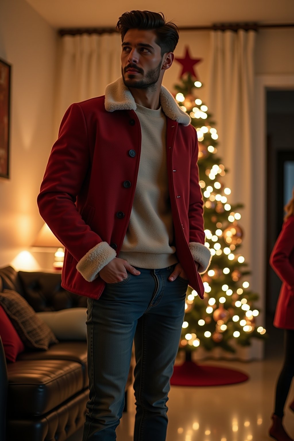 Für die betriebliche Weihnachtsfeier empfiehlt sich ein Business-Casual-Ansatz mit festlichem Twist. Ein dunkler Anzug oder Kombination aus Sakko und Stoffhose bildet eine professionelle Basis, die durch ein weißes oder hellblaues Hemd mit festlicher Krawatte in Rot oder Grün ergänzt wird. Elegante Lederschuhe und dezente Accessoires wahren die geschäftliche Angemessenheit. Im Familienkreis darf die Garderobe entspannter ausfallen: Ein hochwertiger Strickpullover in weihnachtlichen Farben über einem Button-down-Hemd mit bequemer Chino harmoniert perfekt mit dem gemütlichen Setting. Hier können auch auffälligere Elemente wie ein Norweger-Muster oder ein stylischer Weihnachtspullover integriert werden. Der Schuhstil kann von Chelsea Boots bis zu gehobenen Loafers reichen. Der Dresscode für familiäre Zusammenkünfte lässt mehr Raum für Persönlichkeit und Tradition.