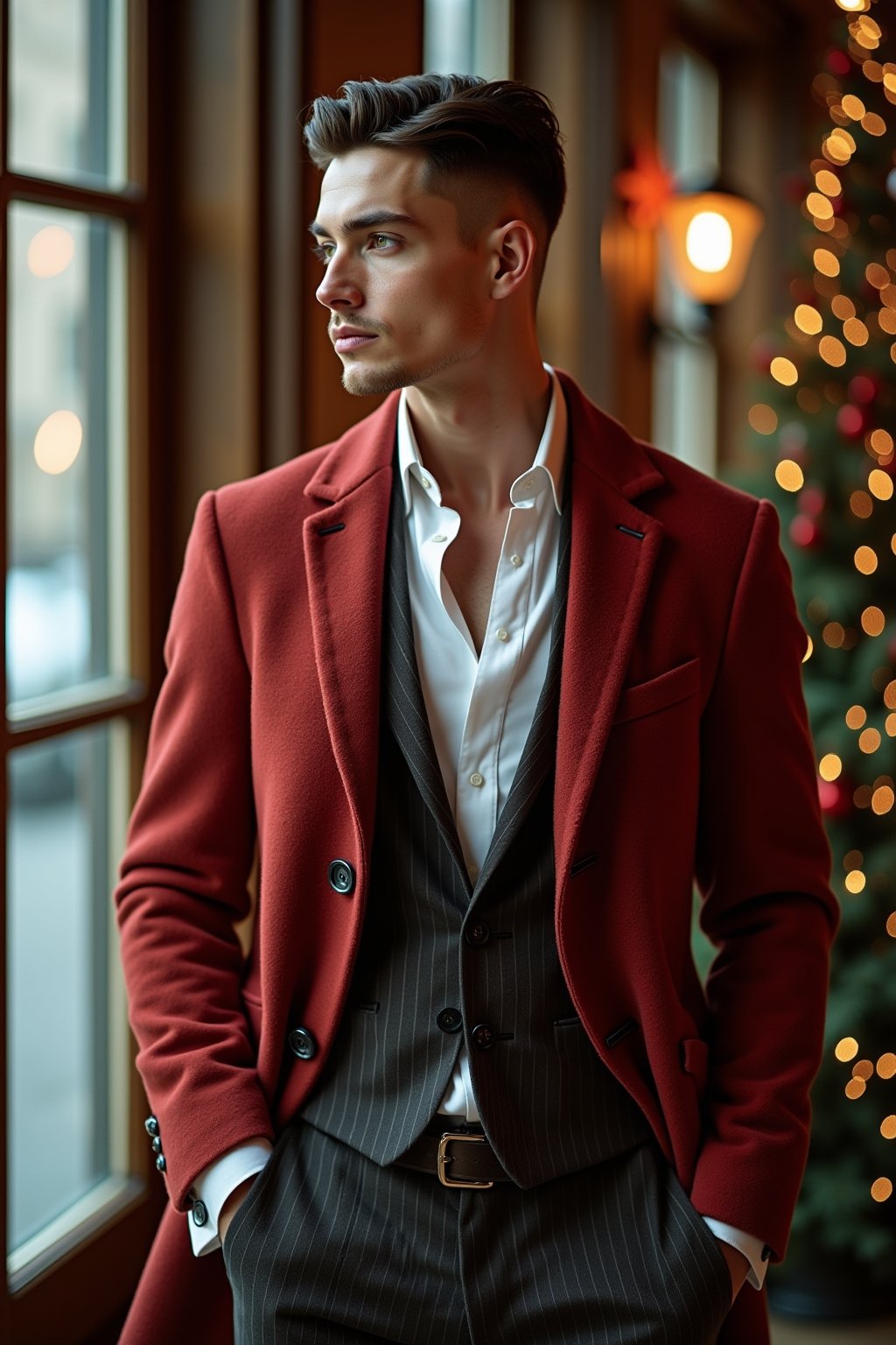 Während der Weihnachtszeit warten verschiedene Anlässe mit unterschiedlichen Dresscodes auf stilbewusste Männer, die ihren eigenen festlichen Look kreieren möchten. Für die Firmenfeier empfiehlt sich eine elegante Kombination aus dunklem Sakko, schickem Hemd und einer dezenten Krawatte in weihnachtlichen Farben wie Burgunderrot oder Tannengrün. Beim lockeren Treffen mit Freunden darf es etwas entspannter zugehen – hier macht man mit einem hochwertigen Strickpullover in Festtagsfarben, kombiniert mit einer gut sitzenden Chino, alles richtig. Beim Familienessen sorgt ein komfortables, aber dennoch gepflegtes Outfit wie ein Kaschmirpullover über einem Hemd mit Stoffhose für den perfekten Mittelweg zwischen Gemütlichkeit und Eleganz.